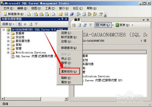 右键点击服务器名称,选择“重新启动”。点击重新启动会弹出一个是否重启的框,请选择“是”。如图所示: