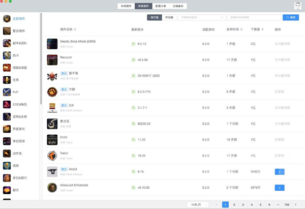 桃乐豆目前并未统计插件的下载次数,界面里的”下载量”是来源于Curse。换句话说,非Curse源的插件,比如”爱不易”、”NDui”、”ElvUI”等,它们的下载量其实是虚构的,因为目前桃乐豆非Curse源的插件都是手工挑选、比较受欢迎的插件,而且数量不多,所以我把它们的下载量设置的比较大,让它们集中排在前面。