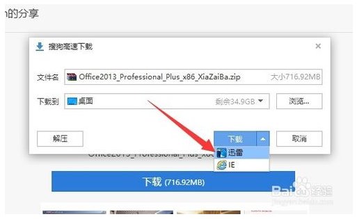 此时将弹出“浏览器下载管理器”窗口,在此点击“下载方式“下拉列表,从中选择”迅雷“项,以使用“迅雷”下载对应的文件即可。
