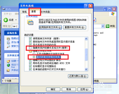 打开系统盘显示隐藏文件与受系统保护的文件