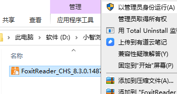 3、以管理员身份运行“FoxitReader_CHS_8.3.0.14878_GW.exe”。
