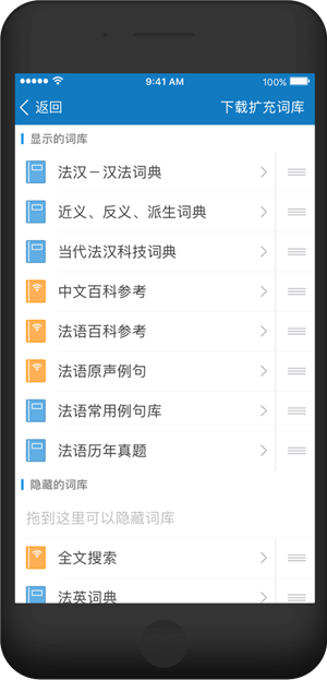 改进全新长按查词界面,点击图标还能跳转到《法语助手》查看详细释义