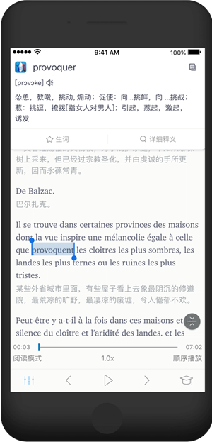 听力统计、笔记同步、语音高亮跟随,让您轻松愉快学法语