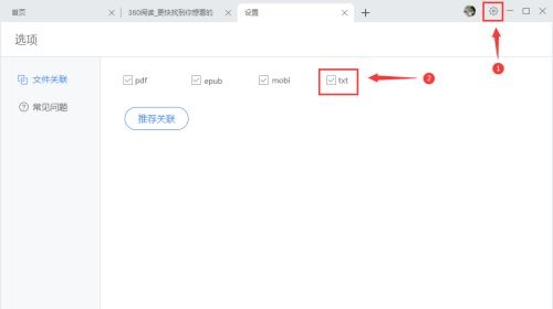 点击“设置”按钮,再将“TXT”前面的复选框打上“√”即可。