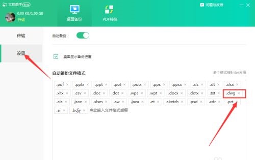 点击设置按钮,将“dwg”添加到备份文件格式中即可。