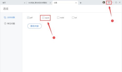 点击“设置”按钮,再将“epub”前面的复选框打上“√”即可。