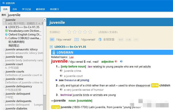 欧路词典最新版是一款非常实用的词典软件,软件拥有常用英汉词条30多万个,专业词条40万个,支持加载MDict、灵格斯、Babylon等多种词典格式。用户可以打开软件对自己需要文字进行在线翻译,并且词典会给出相似的英语词汇,非常适合用户用于学习英语。