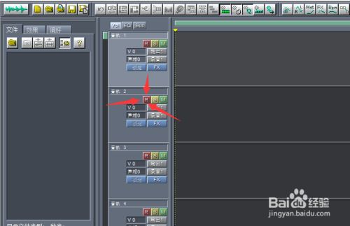 第五步;伴奏能使用的情况下(重要的一步),我们把鼠标移到音轨2,点击音轨2上面的,(红色R键)。