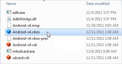 1、首先要安装好 Virtualbox 虚拟机,然后下载 Android v4.0 Ice Cream Sandwich 的虚拟机文件,解压出来你可以看到其中有一个叫做 Android-v4.vbox 的文件,双击之即可开始运行。