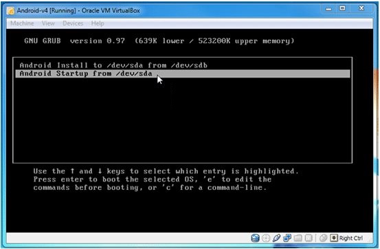 3、在启动选项中选择第二项“Android Startup from /dev/sda”