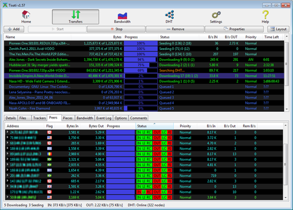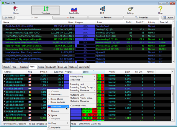 虽然BT资源下载器(Tixati)轻巧又免费,但其功能非常完备,如选择性下载、优先级排序、广域捕获、顺序下载、DHT、PEX、LPD和Magnet uri。它还具有MSE/PE以提高安全性。