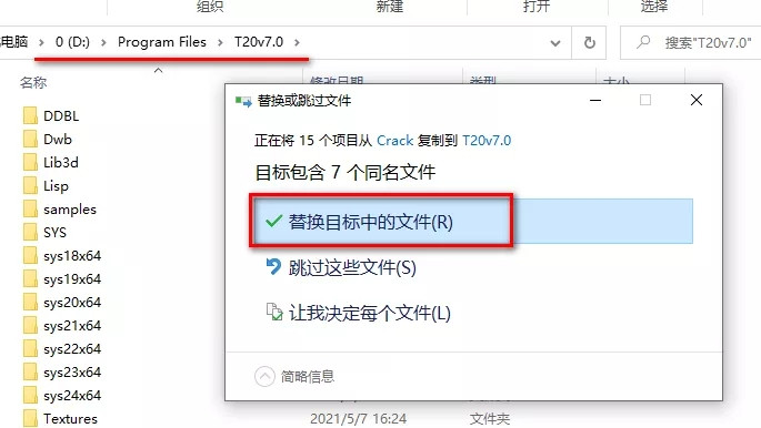 3、粘贴到软件安装路径下(第5步设置的路径),点击“替换目标中的文件”。