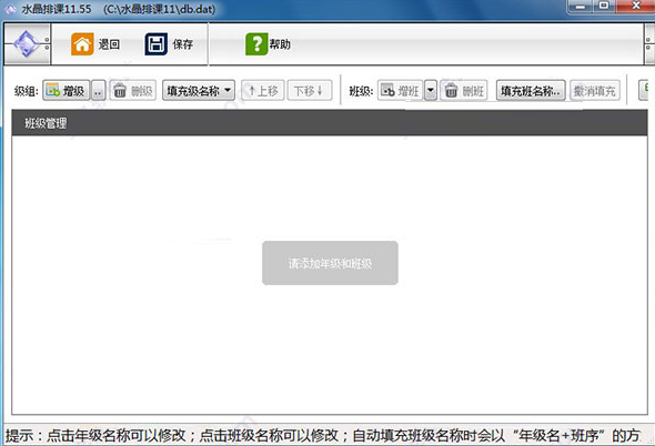 第一次启动水晶排课后,可以看到如上图的界面。上图因为水晶排课刚安装而基本数据未录入,所以大多数按钮呈灰色的不可用状态。