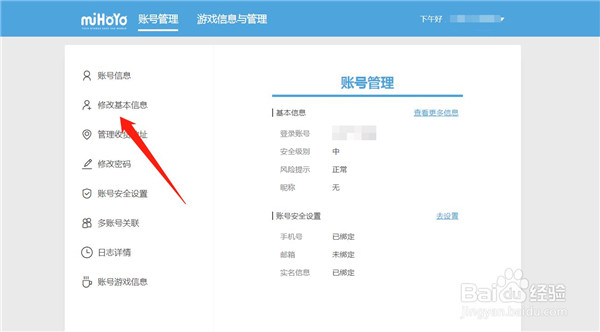 1、需要进入米哈游账号管理中心中设置相关信息。