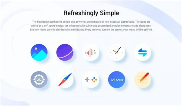 回归最真实、自然的感官状态,不为博取眼球,寻求体验上短暂的刺激。Funtouch OS 秉持 Original Design 理念,采用中纯度水彩色、平衡的图标性格表达,仿物理世界的直感操作和交互动效,让形式追随功能,在虚拟与现实中探索更为自然的平衡。