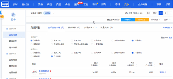 * 竞品关键指标透视、进店来源、成交关键词查询、TOP商品榜透视、交易构成透视、趋势透视
