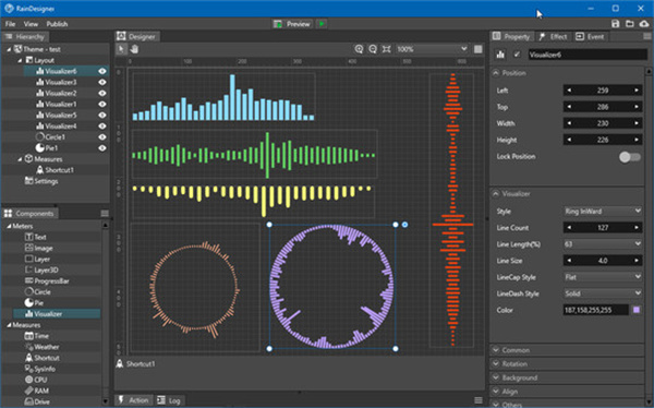 雨滴壁纸(RainWallpaper)是一个有着强大可定制性的动态壁纸DIY引擎,使用它内置的可视化设计器您可以所见即所得的添加各种动态元素到桌面壁纸之中,包括动态视频、网页、时钟、天气、快捷方式、系统信息、动画序列、GIF、音乐频谱等,真正做到您壁纸您做主!