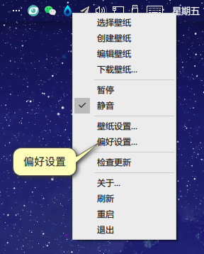 默认这个软件是全透明任务栏的,你可以在任务栏托盘区域找到蓝色雨滴的图标,右键 – 偏好设置(如下图)