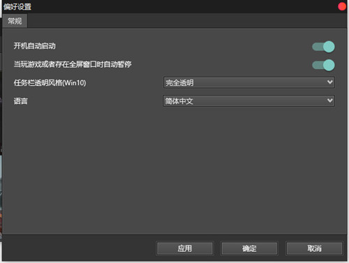 设置界面可以选择是否开机启动,是否透明任务栏(如下图)