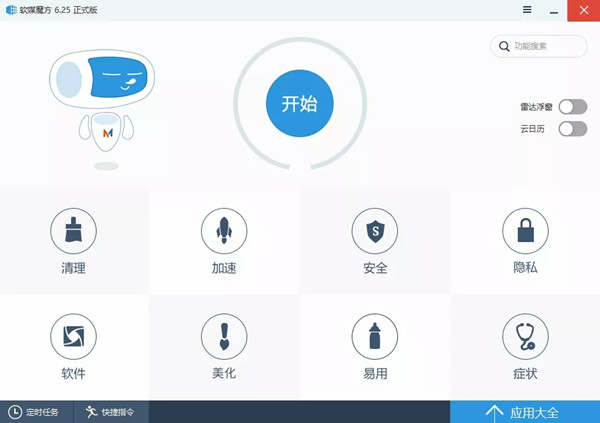 今天给大家推荐一款Windows系统增强辅助工具,软媒魔方完整版,可能很多人都听说过,今天小编介绍给大家。软媒魔方历经Vista优化大师、Win7优化大师发展而来,软媒魔方6支持64位和32位的所有主流Windows系统,从优化大师发展为一款系统增强套装,自动化、智能化解决各种电脑问题。软媒魔方内置20余款强大、绿色化的知名组件,清理、美化、桌面增强、系统雷达、通知区万年历、优化加速、安全守护、软件管家、电脑医生、虚拟光驱、U盘装机等等。接下来小编介绍几个比较实用的小工具,其他的小伙伴们自己去发现吧!