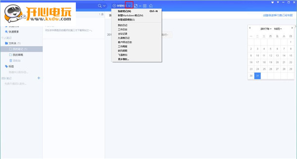 4、若用户要创建笔记,我们点击新建笔记右侧的“下拉菜单”,然后选择创建的类型,其支持多种不同的类型。