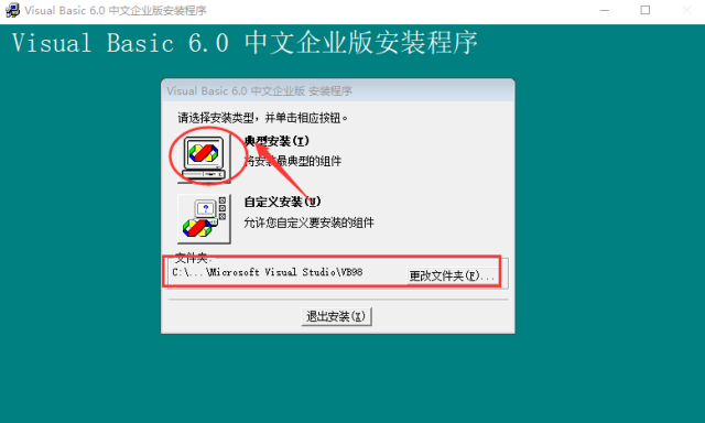 12、选择典型安装,默认安装在C盘(建议安装在除C盘以外的磁盘上,可在D盘或其它盘上新建文件夹VB6.0),点击是。