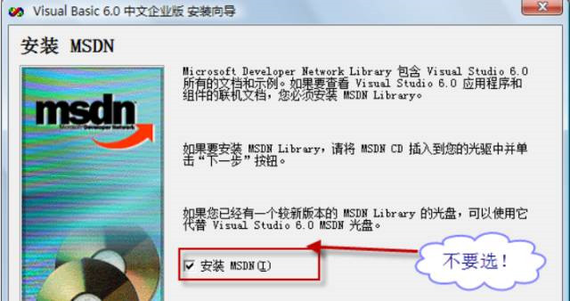 14、重启电脑后,可自行选择是否安装MSDN。不需要安装的话,MSDN不要勾选。需要安装的点击下一步后选择安装包文件夹即可。根据你的实际情况来。