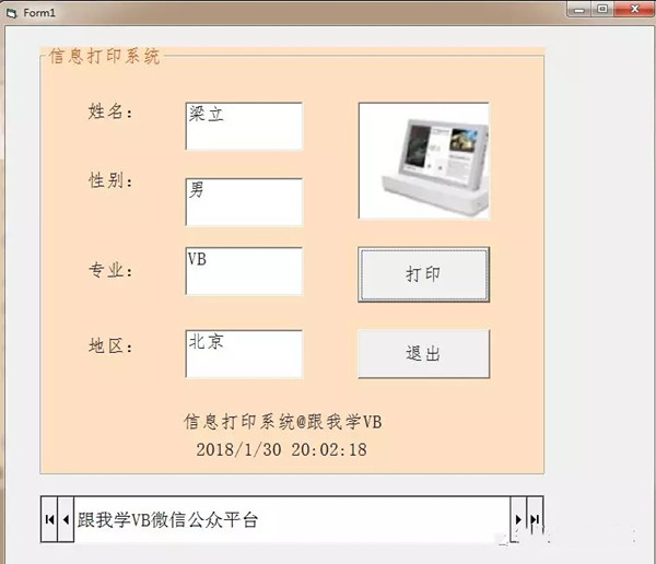 要实现个人信息与本人照片的一一对应,我们必须要先提取出每个人的信息以及照片。那么如何实现呢?我们用VB中分享的Ado控件连接数据库,获取数据源后,在VB主界面窗体上添加 控件 实现与数据库表中的字段一一对应。如下图所示,这样每个人的基本信息就提取出来了 。
