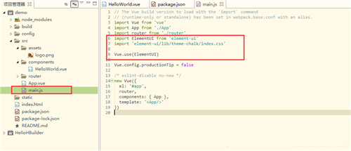 4、在main.js文件中引入element组件: