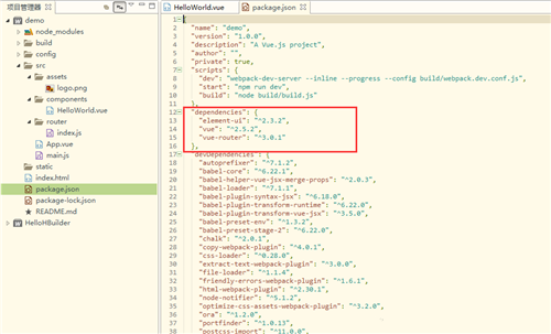 2、查看配置文件package.json,是否有element-ui组件的版本号 如下图: