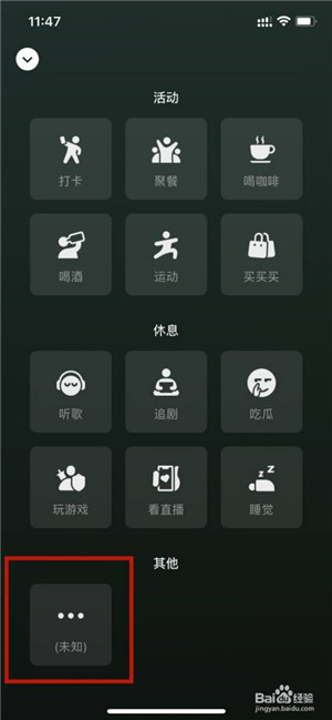 在“我”的界面中,它这里多了一个“状态”入口,我们进入后可设置自己的状态。