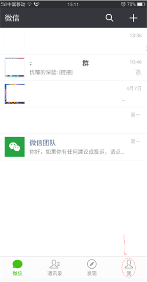 1、首先打开微信8.0.8版本官方版,选择红色箭头所指的“我”功能如下图所示: