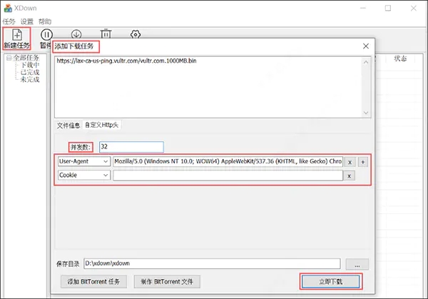 1、xdown使用简单,新建任务以后输入下载地址就可以立即下载