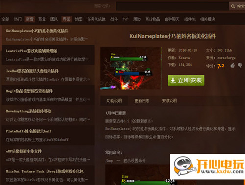 6、辅助工具:在功能分类目录中,有聊天增强、职业助手、频道过滤、自动换装、坐骑增强等辅助插件供玩家选择。玩家通过设置这些插件可以在游戏中实现聊天窗口信息增强、复制聊天内容、显示聊天时间、过滤广告刷屏、使用随机坐骑、快速自动换装等辅助功能。