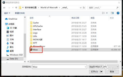 3、安装之后,启动插件后,我们就会看到跳出图中所示的界面让我们选择游戏路径,我们选择确定进行选择,打开魔兽世界的安装位置,找到这个wow,点击打开,选择好路径之后,我们再点击确定就可以啦。
