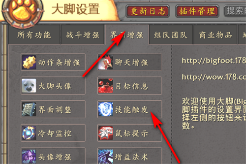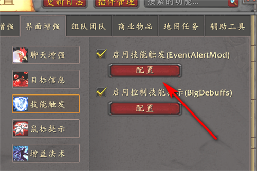 2、找到界面增强中的技能触发。