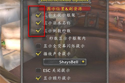 4、在配置页面中把显示法术名称和显示倒数秒数前面的对号取消就可以了。