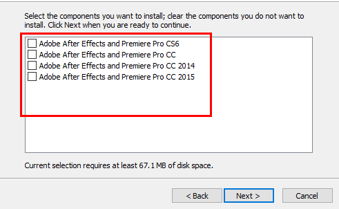 选择您需要安装的adobe After Effects版本,勾选以后点击next