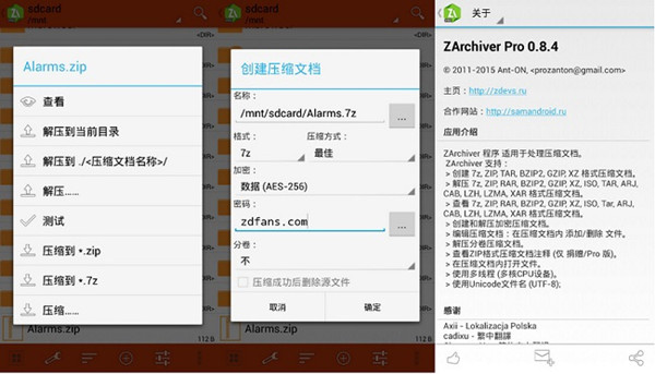ZArchiver Pro是一款安卓平台功能最强大的专业压缩和解压缩软件,支持压缩和解压rar,zip,7z等等常见格式,支持压缩和解压带有密码保护的压缩文档,支持Unicode格式文件名(UTF-8),完美显示中文名称不乱码,(这是安卓上唯一的一款),还支持分卷解压,支持多线程、速度和成功率绝对强于其他解压缩软件。它可以解压缩目前互联网中所有常见的压缩格式,包括了7z (7zip), zip, bzip2 (bz2), gzip (gz), XZ, rar等等多种压缩各种,有了它,你再也无需为下载了压缩文件手机系统却解压不了而尴尬了。同还能够压缩以及解压带有密码保护的压缩文件,支持多分卷压缩包解压操作,并且还能直接从邮件中打开压缩文件。如果你也解压多种格式文件的需求,那么强烈推荐这款非常不错解压缩软件。