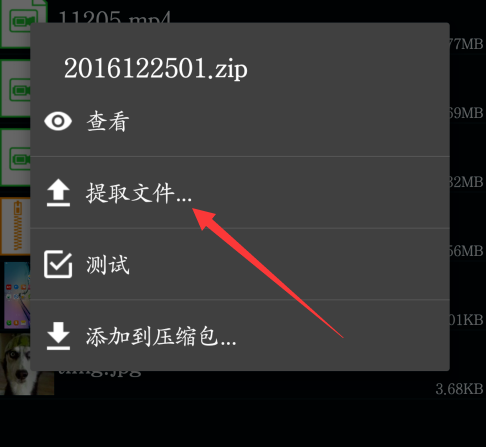 点击这个压缩文件,软件就会弹出一个窗口。我们在这个窗口里面选择”提取文件”。