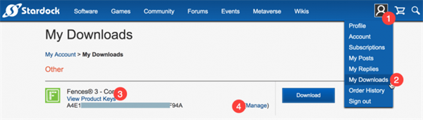 登陆成功后,点击右上角「人物头像 > My Downloads」,在跳转页面中可以看到你下载过的 Stardock 系列产品。