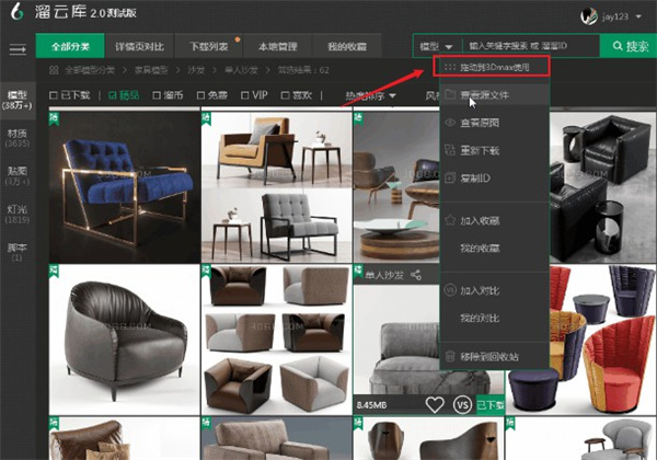 2、安装完成,在溜云库登录账号之后,选择需要的模型和素材进行下载;