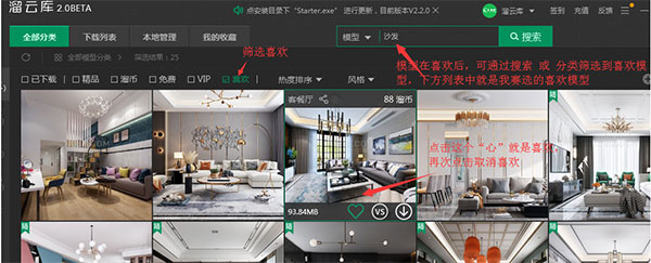 喜欢 在找素材的过程中,遇到喜欢素材,又不想下载,可先添加喜欢通过筛选“喜欢”,找到自己的模型