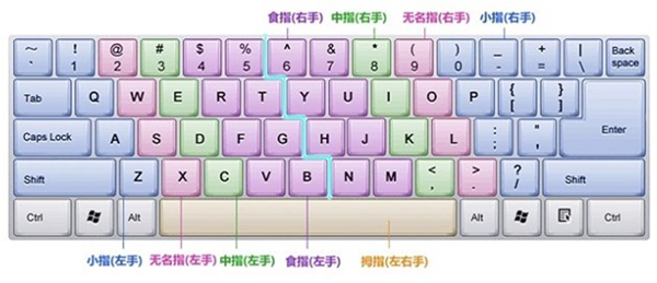 打字时双手的十个手指都有明确的分工,只有按照正确的手指分工打字,才能实现盲打和提高打字速度。