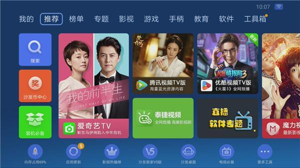 首先通过U盘在智能电视/电视盒子上安装一个最新版本的沙发管家。