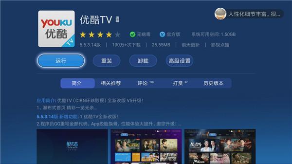 点击安装之后,就可以看到优酷TV全新改版升级为“CIBN酷喵影视”
