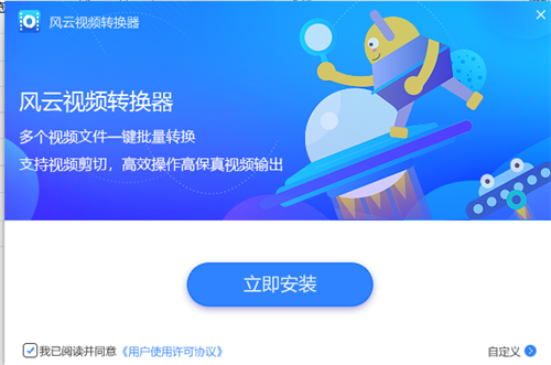 1、下载风云视频转换器最新版压缩包,然后进行解压,解压后,双击exe程序,进入安装界面,勾选我已阅读,点击立即安装
