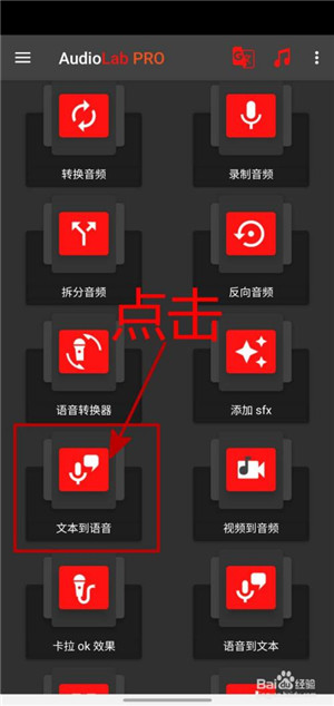 2、在AudioLab软件的首页中,点击“文本到语音”。
