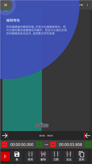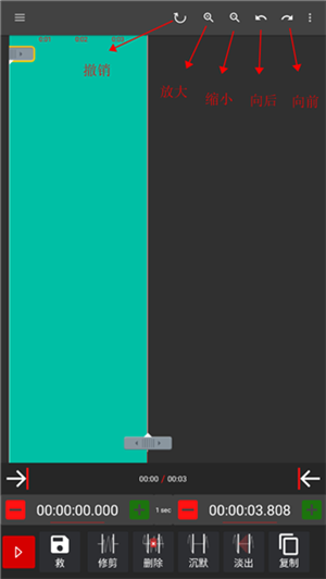 音频修剪:拥有剪切/裁剪/复制/粘贴/添加静音/撤消/重做的功能。