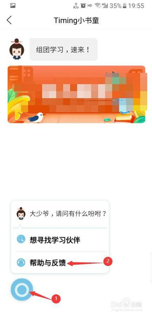 3、在Timing小书童页面,点击下方图标并进入“帮助与反馈”。